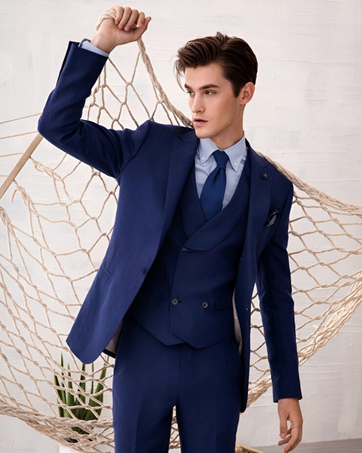 Attending a special conference or formal event? This royal suit can give you the best impression. Ensure you go with either the blazer or the double-breasted waistcoat so that you don’t swelter much.